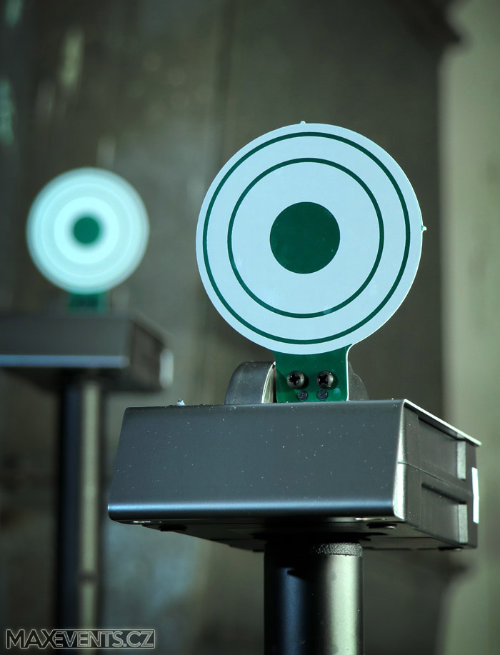 Elektricky zvedané osvětlené padací terče nabízející několik kompetitivních her, které jsou bodově hodnoceny. Můžete si tedy zahrát třeba i turnaj na body. V některých variantách střelnic, je možná střelba dvojic, či trojic. Každý střelec má pak svoji barvu terčů.